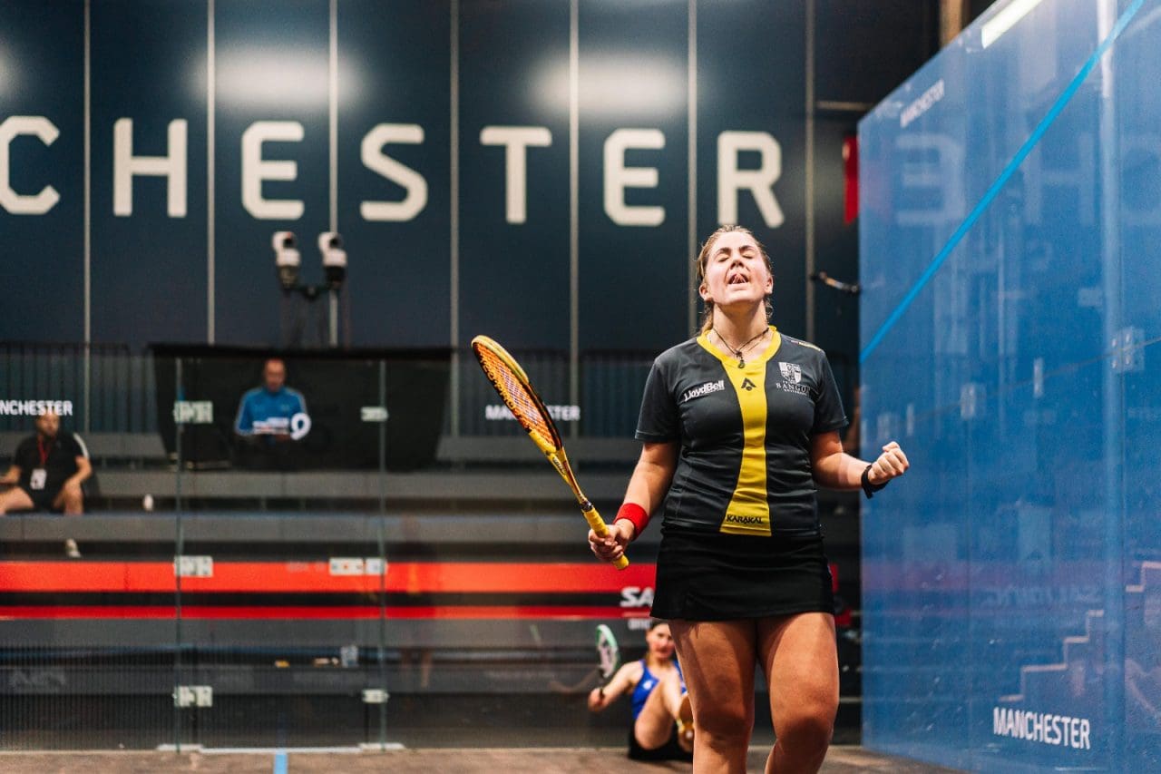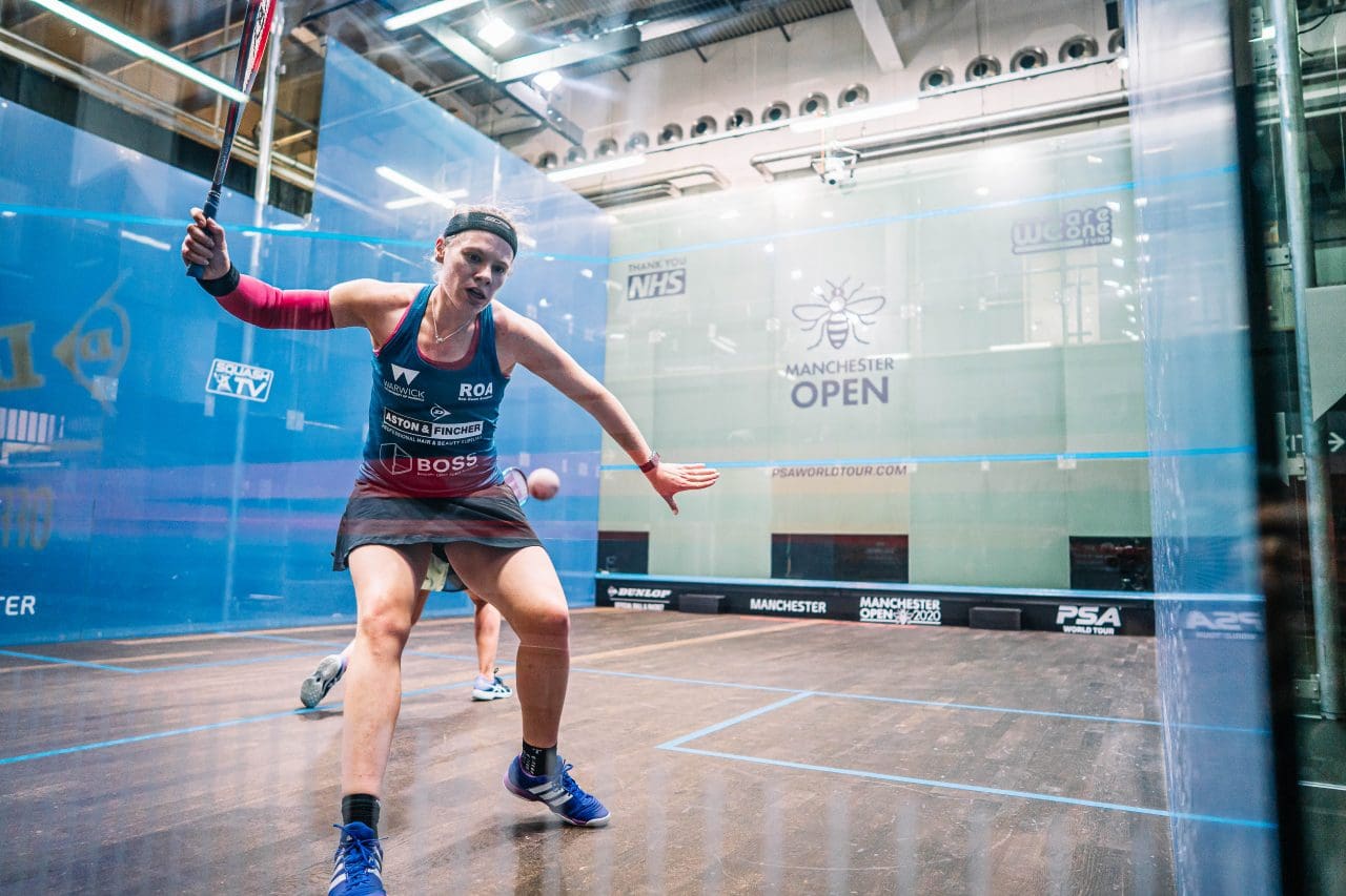 The world’s top two British Players, Tesni Evans and Sarah-Jane Perry, narrowly escaped surprise defeats on day four of the 2020 Manchester Open, PSA Silver tournament after they claimed 3-2 victories over World No.14 Alison Waters and World No.25 Hollie Naughton inside the National Squash Centre earlier today.