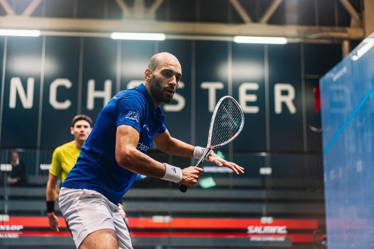 World No.2 Ali Farag continued his Manchester Open campaign in the men’s event as he overcame Frenchman Gregoire Marche, but he was made to work hard for his 11-1, 7-11, 11-8, 12-10 victory.