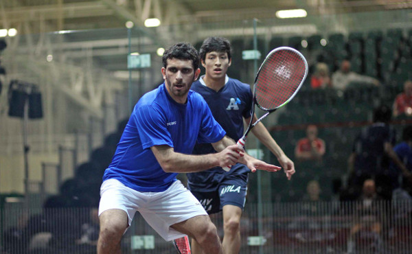 “This is my best win on the PSA – Alfredo is 55 in the world, I have never beaten somebody that high,” said the delighted Kuwaiti (pictured above in world championship action with Avila) afterwards. “Plus, I had a lot of tournaments in my country and only arrived yesterday in Manchester, so I was only trying to do well, but never thought I would win really.