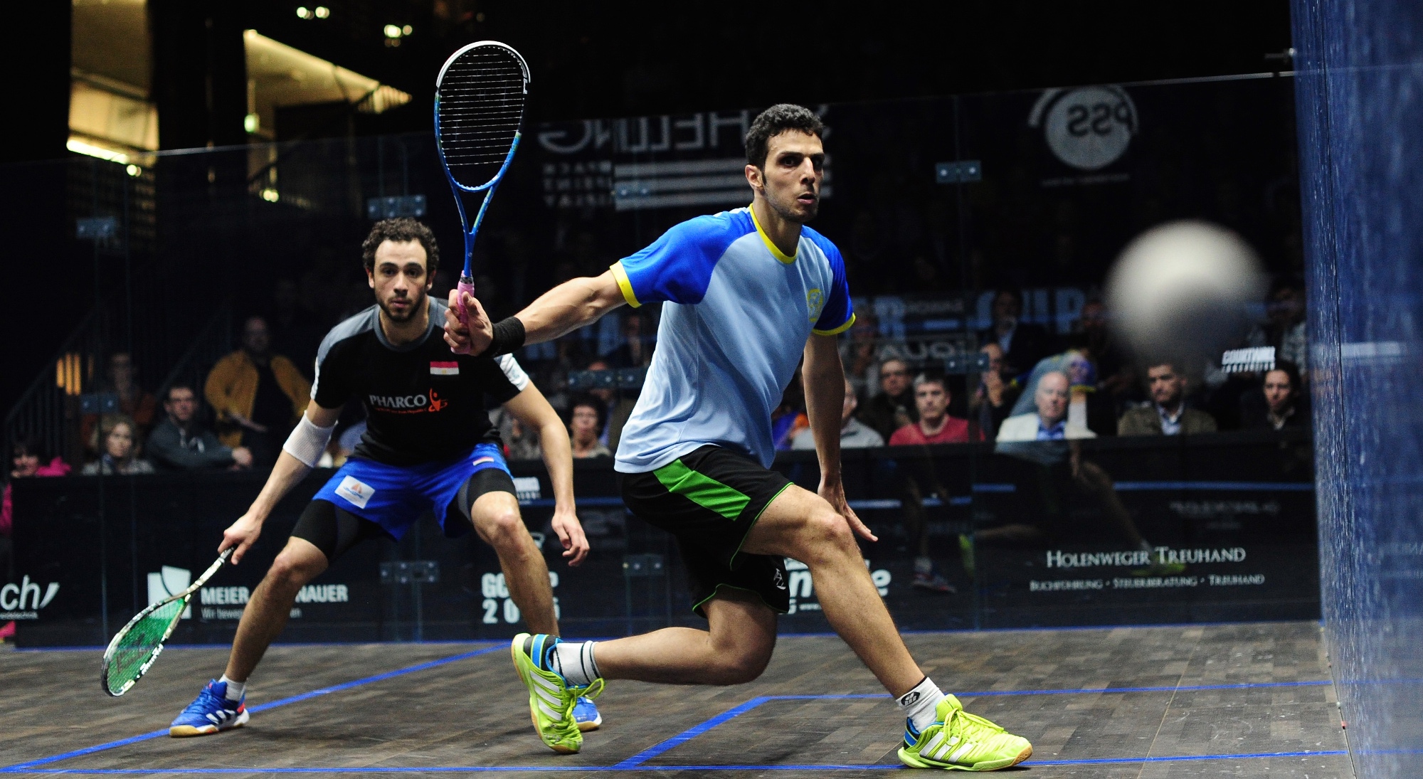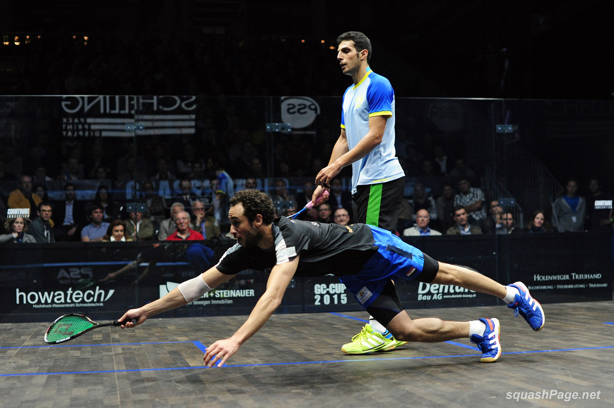 Squash Mad invited Andy Whipp (right), the former world No.64 and a member of the Benz Bavarian Duffield squad in the Premier Squash League, to take an in-depth look at the Grasshopper Cup quarter-final clash between Ramy Ashour and Omar Mosaad. Andy’s company, AWsome Sports, sponsors the tall Egyptian.